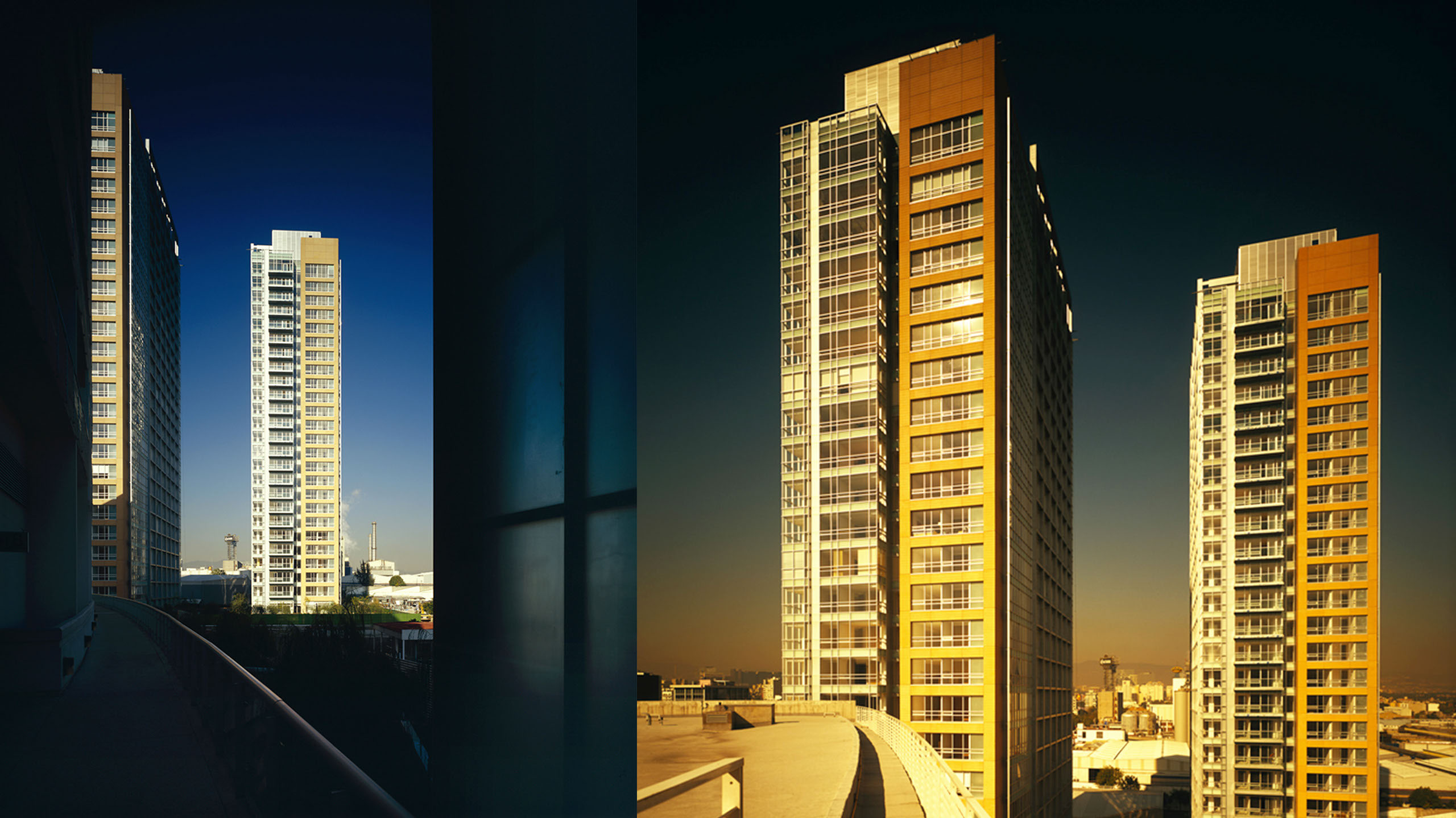 Two sleek 30-story towers that afford unique views of the city encompass 360 privileged residences. Glass, metal entwined with terracotta panels ensure absolute privacy.