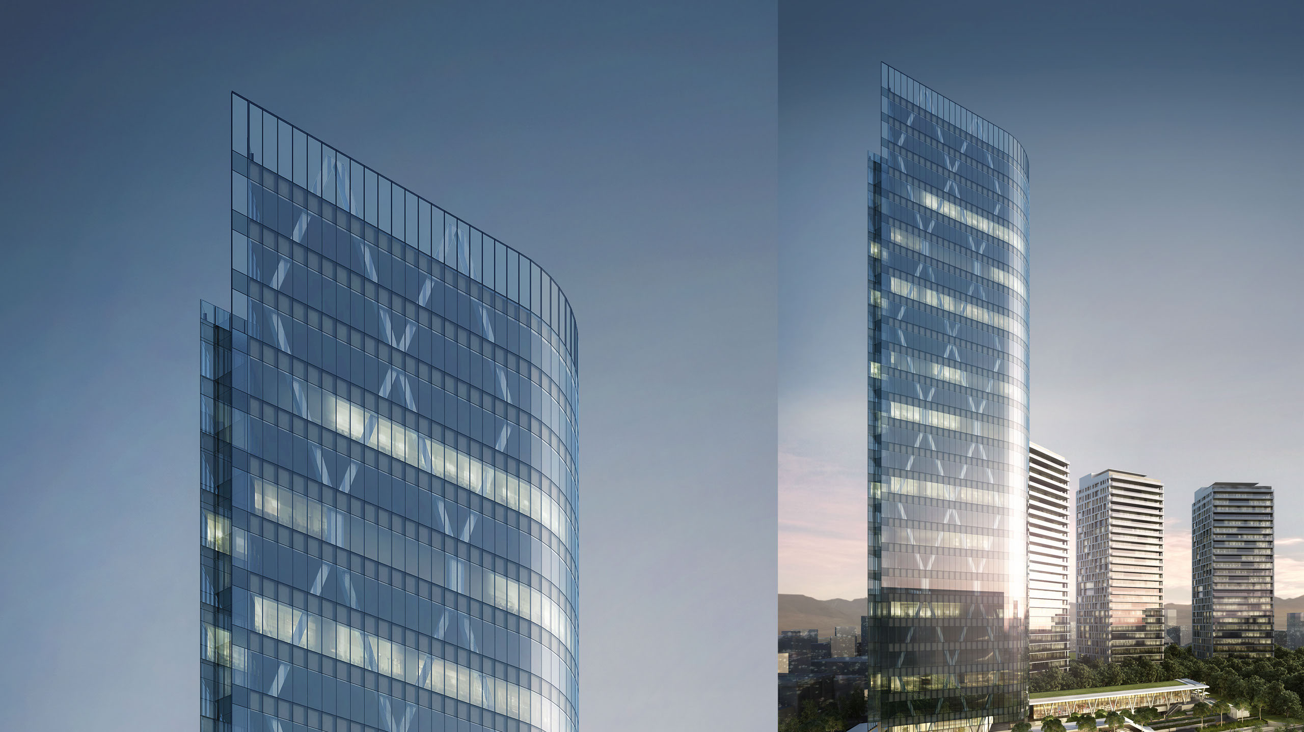 Harmonically integrated into its site, its volume encompassed through two elements of different heights that naturally counteract with each other it provides a sleek and sophisticated effect. An accurate blending of low-e reflective crystal and steel structure create breathtaking diamond shapes visible throughout its façade.